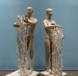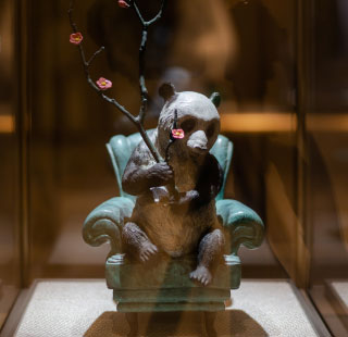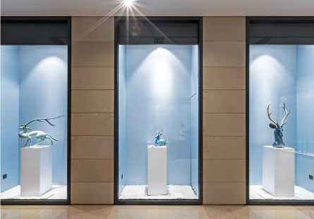 Art treasures are elaborately displayed in store windows along the Art Corridor at Damei Art Center. Each season features a different theme and brings people both spiritual and visual enjoyment.